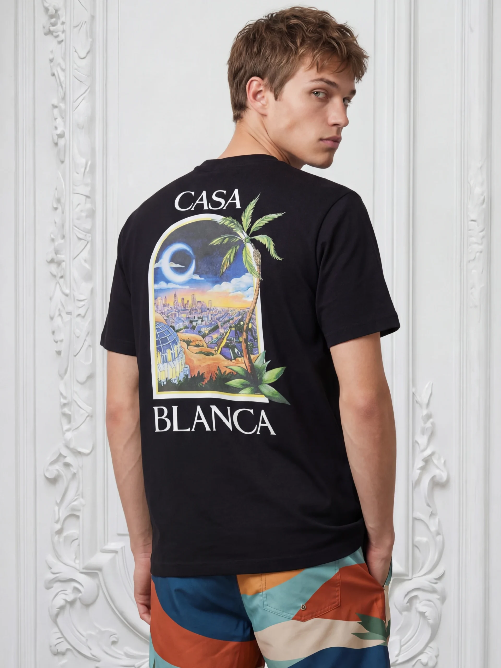 We work with monitoring programmes to ensure compliance with our social, environmental and health and safety standards for our garments. To assess compliance, we have developed a programme of audits and continuous improvement plans. Made of super-soft cotton, the Casablanka Night City Palm Inspire Man Black Tshirt features a high neck and back, and a slight curve at the shoulders, which makes it extra flattering. If there’s one thing the 90’s got right, it’s the basics.